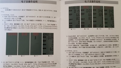 划船机没毛病,说明书却完全不知所云,电子表安照说明书根本没法设置,只能自己慢慢琢磨