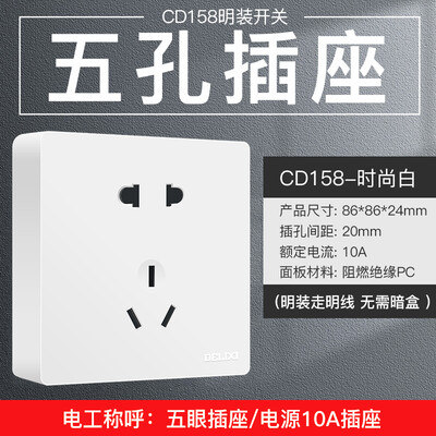 是正品,信赖商家,宝贝质感很好,价格也适中,无限回购!材质很好,质量也不错,到货也很快以前装修的时候插座装的太少,排插么有线,容易绊倒孩子,所以老公买了好多个这种插座,自己放线出来,就方便了很多,看起来也比排插整齐好多,非常满意。德力西MY86ZS京东买的东西,送货就是快!!!!质量还可以的,这个不需要暗盒,需要安装明线就可以了,开关手感还可以的,总体100分给98分!!!