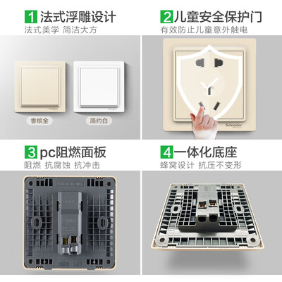 开关按起来回弹力十足,控制精准,外观漂亮大气,听起来声音也很清脆,很不错,简单实用,美观大方。插座用料很足材质很好,斜五孔实用性很高,很不错。施耐德电气A3J42610U2_WE_C1物流很快,当天下单第二天送到,很便利,而且还给送上楼,好评。施耐德电气A3J42610U2_WE_C1老牌子了,比较信任。原来的进水连电导致短路,当天晚上下单,第二天送到,不影响使用哈,推荐购买。装修正好赶上了这一次的活动,趁着这次搞活动的时候优惠力度比较大,就把装修要用到的开关面板等一下子都给买齐了,种类还是挺齐全的,可以一次买齐,比较省心。宝贝收到后,看了下还是比较满意的,一件都不少,快递也挺给力的。