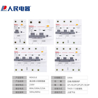 二、人民电器80A空气开关RDX2LE-125参数参考: