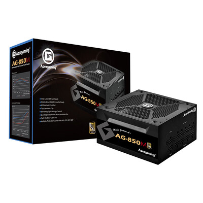 艾湃电竞AG-850M这个艾湃电竞的ag850w性价比非常的高。主电容日系,副电容台系。金牌。dcdc架构。还有十年质保。非常推荐看到商品页面写的10亮质保,信心和质量质保期成正比,850w额定功率足够折腾了,电源拿在手里跟沉重,用料十足,还有京东自营售后保证格外放心要说电源的好,上面的选项能够的都勾了,感觉还行,但真要论性能和质量,那就等到我的电源报废时再说了,起码2年或以内出现任何问题那就是不合格的产品了。