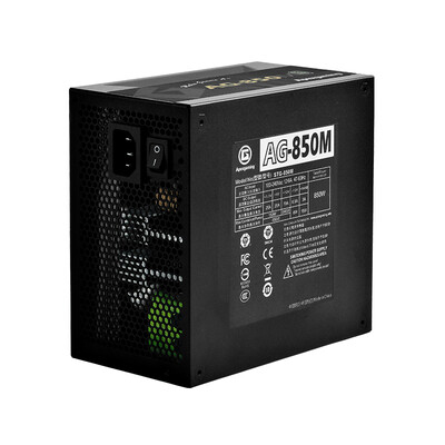 商品名称:艾湃电竞AG-850M; 商品编号:8851057; 商品毛重:2.85kg; 商品产地:中国大陆; 货号:ZPS18X85S3A1M0; 电源尺寸:标准电源(ATX); 接线类型:全模组化; 适用场景:大型游戏/电竞,一般家用/办公; 电源功率:701W-900W; 转换效率:金牌(90%);