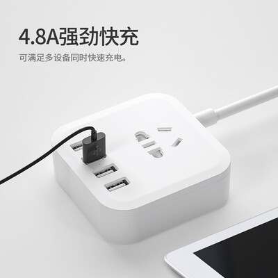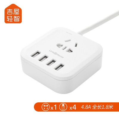 吉屋轻智 新国标USB创意多彩盒型插座 4USB接口+1孔位 4.8A快充 拖线板 1.8米黑色,还可以外形外观:外形和尺寸很紧凑,3个插口,4个USB~产品质感:线材直径很粗,外壳材质比小米的要好一点吉屋轻智EMP311USB-CN这个USB设计真的太实用了,放在床头非常好。手机平板手表都能一起充电了,再也不用分先后了!