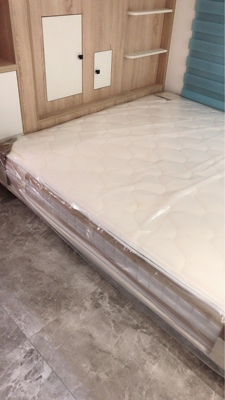 一大早来了电话物流小哥一人搬床佩服,一切安装完毕,物有所值,很满意没味道,有点着急一进家门就马上安排上了,给床垫穿上了我家的衣服。。。躺了下软硬适中舒服。。跟塌陷的椰棕说再见。。。泊兰黄棕加乳胶才是硬道理。。赞一个