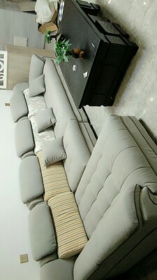 非常漂亮,放在客厅很上档次,超级喜欢!这款沙发不错,看起来很好,大气,不仔细看,还以为是芝华士,坐起来很舒服,靠背轻松,软包超级舒服,沙发座面软硬也合适,坐上去比较柔软,贵妃还可以伸展,全部躺下都没有任何问题,沙发边缘一侧还有充电接口,竟然还可以快充,真是优秀啊