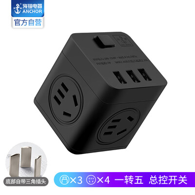 海锚105U全黑这种小方块插座非常不错,用起来方便,相当于一分五建议厂家以后把一个插口设计成英标的这样更便利不必再添加别的电源转换了。好用,省地方,价格便宜,主要是用来放在电网箱里连接路由器之类的用的,所以没要有独立开关的,这种就足够了,已用上,很不错买的鞋收到了呢,码数标准,颜色漂亮,款式经典百搭,穿着舒适很透气,这个颜色正合我的心意。