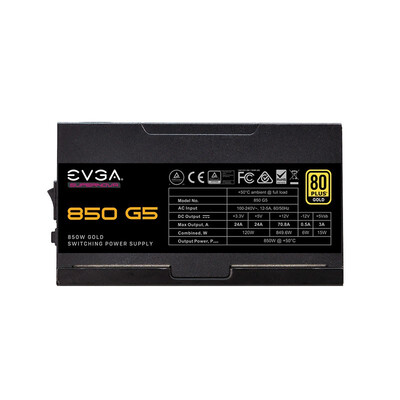 商品名称:EVGAG5; 商品编号:100018883962; 商品毛重:3.2kg; 商品产地:中国大陆; 电源尺寸:标准电源(ATX); 接线类型:全模组化; 适用场景:大型游戏/电竞,一般家用/办公; 电源功率:701W-900W; 转换效率:金牌(90%);