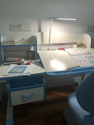 买这个学习桌之前挑了很久,价格差距也很大几百到几千不等,最后对比一下细节和评价还是决定给孩子买一个好一点的,毕竟一分钱一分货还是有道理的,这套桌椅孩子很喜欢,也没有味道,用着放心,桌椅可调用到高中没问题。