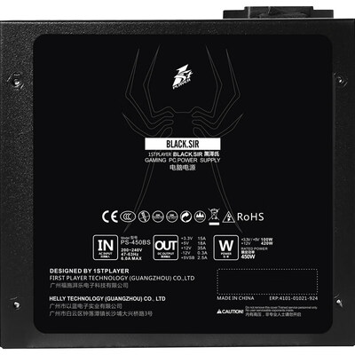 商品名称:首席玩家黑泽氏450; 商品编号:1483679; 商品毛重:1.65kg; 商品产地:中国大陆; 电源尺寸:标准电源(ATX); 风扇启停:不支持风扇启停; 接线类型:非模组化; 适用场景:一般家用/办公; 电源功率:301-500W; 转换效率:其他;