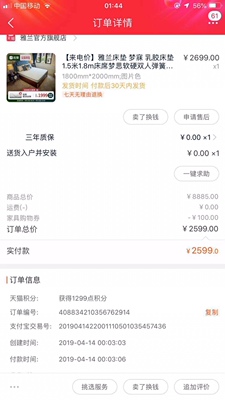 质量真的不错,真是物超所值,看床垫看了很多实体店,价格贵不说而且没有这个质量好。本人不是托,特意用了一周之后的感受。本来说好的估计到货需要12-15天,因为而且定做了一个,一周几天到货了。物流值得点赞。如果再次购买毫不犹豫的会再来这家。