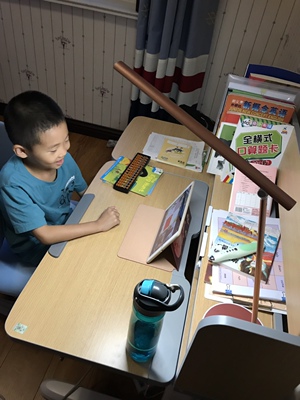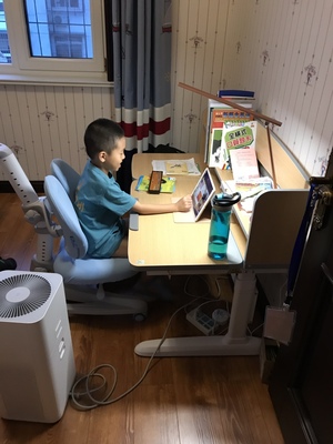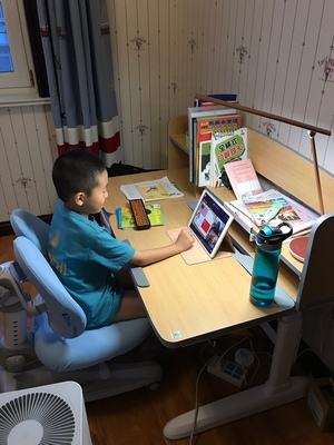 英语作业在护童上完成,坐姿很棒