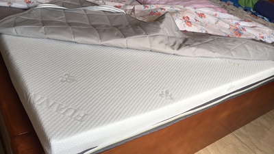 用了大半个月,根据真实体会来评价一下。618买的,价格上是很实在的。发货快,顺丰送货入户,货物包装很稳妥,送的靠垫和枕头都在里面,靠垫是边角料塞的,不过回弹力超赞,用起来很舒服,家里本来就是乳胶枕,所以枕头没用,也不予评价。床垫基本没什么异味,摊开放床上风扇吹了半天就OK了,睡了大半个月完全没感觉有味道。5CM的尺寸,放在椰棕垫子上完全够了。买的是密度较低的,感觉支撑度很好够用,一直有睡得时间长就腰背部肌肉酸痛的问题,这个床垫真的可以改善。总体来说,使用下来很满意。材质成分比例这个我不懂,我只是用自己的使用体会XZ实的评价,希望能帮到想选择的人。