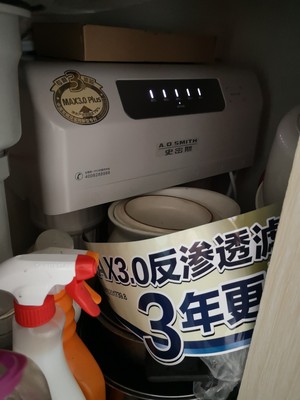 净水器今天安装好了,我家厨房洗菜盆底下没有电源,安装师傅很耐心的在灶台上打眼接通了电源,前后忙了2个小时,对史密斯的售后安装服务表示大赞比起以前的自来水,现在经过净水器净化了的水有一股淡甜的味道,确实有纯净水的口感!如果你家里自来水水质较差,建议还是安装一个净水器,改善饮水健康!
