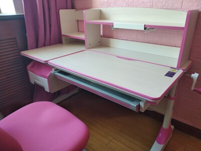 第二次购买了,你介绍朋友买过,价格挺实惠,就是这款买的603款,白色塑料抽屉,感觉没有去年给女儿买的602款的实木抽屉结实。塑料抽屉也没有导轨拉推的顺滑。这是颗粒板材,感觉挺厚重,挺结实。矫正坐姿的儿童书桌椅,也很实用。这种专业的儿童书桌,感觉比家具城的普通书桌时尚.实用。
