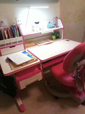 桌椅都收到了,书桌椅子还可以调节高度,孩子大点还能用桌面还可以写字画画,使用水彩笔画画,用湿毛巾擦一下没有了,护眼灯的灯光柔和,可以根据情况调节亮度,不刺眼,保护孩子视力,抽屉可以把作业本书放进去,拿比较方便,很结实用料厚道,质量很好,态度好,很热情,非常满意!
