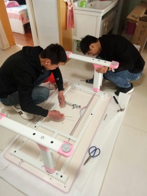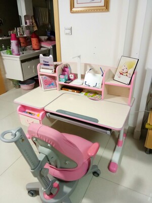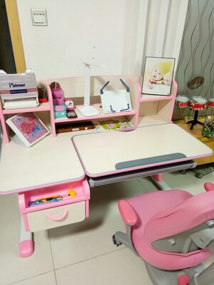 孩子很喜欢~安装师傅也很给力,天都黑了,也给安装完了~上午收到,下午就给安装好了!桌子很好,没有一点味道,好评~