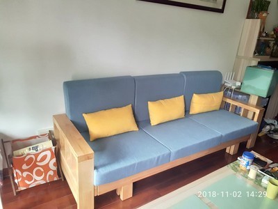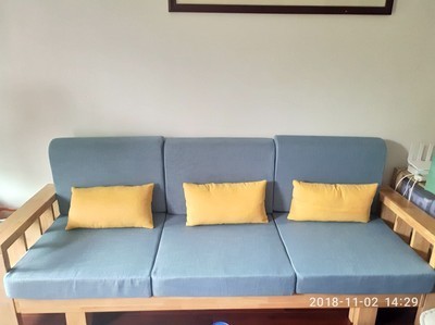做工看起来很细致,摸起来也很舒服,看着大方,也很有重量,颜色好看,很感谢卖家没让我失望,物流还行吧。家人回来看了也很喜欢,还夸我会买东西。前天朋友来家里做客一直说沙发好又便宜,总之沙发不错,很满意 收货1天后追加: