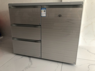 买了尊贵的柜式冰箱,机子声音很小,制冷效果不错。上面还可以放些东西,可以弥补厨房台面不够长的不足,为了和厨柜的柜一致,店家还发了和柜子颜色相似的贴纸,目前一切都好。快递员送货上门开箱验货,态度也很好