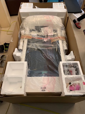 跑步机收到了,买的有点高大上了。快递小哥来了夫妻两,但是东西确实尺寸太大重量太重,废了九牛二虎之力才搬到我五楼的家,在小哥的亲切的指导下很快就会使用了,在用了几天后才来评论。向我刚才说的有点高大上了,但使用起来确实不错。这样我可以在家里跑步锻炼身体了。