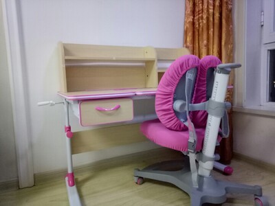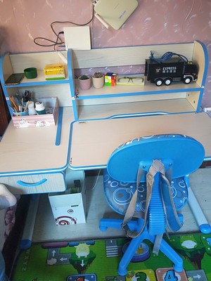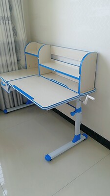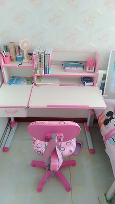 宝宝期待许久的书桌到了,话说,牌子很多,款式也很多,最新你选择了这款,颜色是宝贝自己选的,款式是妈妈选的,最终大家都很满意,安装师傅也很快上门安装好了,送的台灯也还不错,就是备用的椅子套有些脏脏的,桌子高矮都可以调,椅子也是的,还是挺满意的