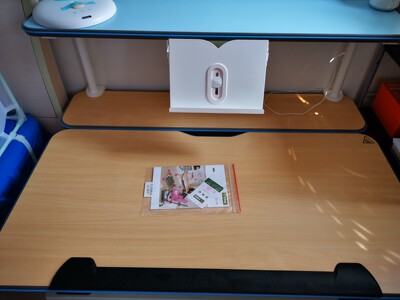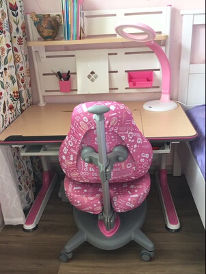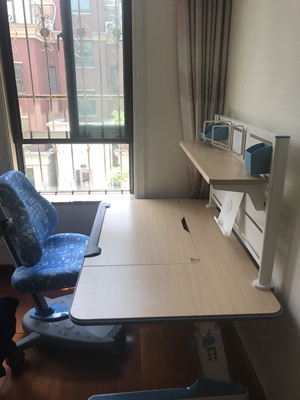 孩子4岁了,经常写画看在我的电脑桌上,姿势很不舒服,而且影响我用电脑,于是给他买个电脑桌。品牌多价格不一,年龄跨度大,还是买个可靠的大牌子。收货后自己安装,非常简单,老婆孩子都觉得好,满意。遗憾的是椅子有一个轮子在没人坐的情况下会自锁,影响移动。还有那个放书的架子如果是跟桌子一体的就更好好了。再就是灯了,亮度还可以,就是质感和功能方面还是换掉吧。最后说下感谢售前小土豆和小瓶子的服务好。