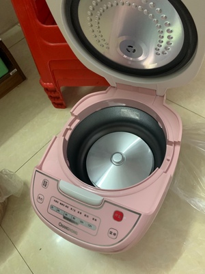 超级可爱的电饭锅了,就喜欢粉嘟嘟的东西,小小的超可爱了,很适合一个人用,煮2到3人的饭估计也不成问题,说明书还没有仔细研究,看到此锅还有蛋糕和酸奶的功能,有点控制不住的想要折腾试一试,真的是太可爱了,越看越喜欢,煮了一次绿豆汤效果不错,哈,还送了量杯和饭勺漏拍了回头补上