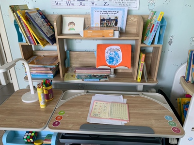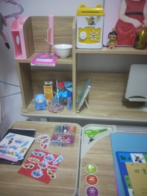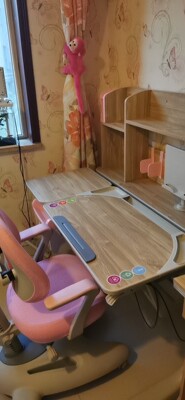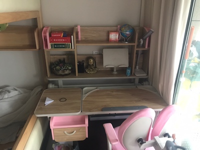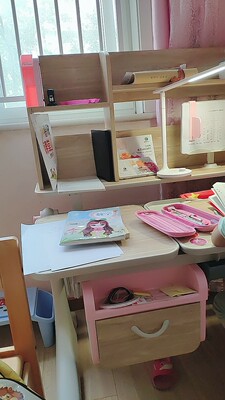 观望了挺长时间在活动的时候买了正好是六一儿童节送给小朋友的礼物,真正的实木款桌椅没有任何的异味让我家宝宝用的我也放心。上面有书架可以放挺多的书收纳能力很强上。下面也抽屉可以放些文具,小朋友用的也喜欢真的是很满意的一次购物。服务售后也都很及时到位没买几天就到货用上了