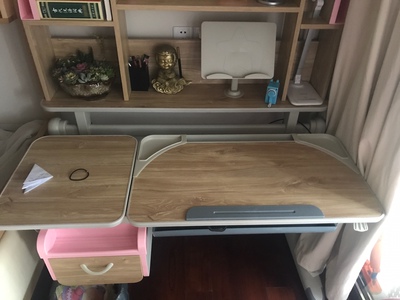 第二次购买这个书桌了,去年双十二也抢了一套给自己孩子用,到货没有味道,升降方便也很好打理觉得不错今年推荐给了邻居,她怕自己速度不行让我代抢的,心里压力还挺大,看来认同这个书桌的人还是不少嘛,等老二上学了再来一套粉色,省的两人老是抢