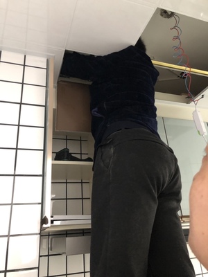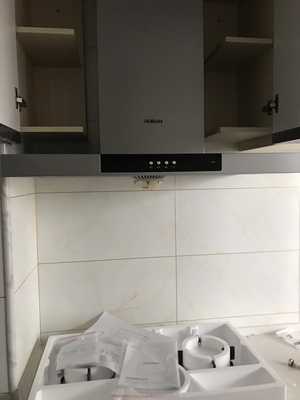 买的时候就预约了送货时间,很准时,快递师傅送货上门的,态度很好哦,好大一个纸箱,房子在装修很乱,收货的时候就没有开箱,今天才开箱安装,是自家舅舅帮忙安装的,安装方法很简单,挂上去之后,发现当时就得位置,配这个抽油烟机大小位置刚刚好,舅舅算的开孔位置太准了,油烟机很合适,开心!