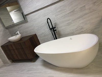 纠结了很久还是决定买这家的人造石浴缸,因为造型很漂亮,人造石清洁打理也比较好,但最大的问题就是实在是太重了,卖家用的物流不怎么样,送货很慢,约好的时间都多等了好几个小时,非常不爽!因为不是电梯房,物流一口拒绝帮忙搬运,付费都不肯,最后请了4个保安大汉费了九牛二虎之力搬上楼,还好只是三楼,都说实在是重,楼层高又没有电梯的真要好好考虑下,搬运这事太麻烦了,看得胆战心惊的!卖家态度还是不错的,后续咨询的一些问题也都解决了,希望今后能考虑推广送货和安装的服务问题,提高售后服务质量就更好了.