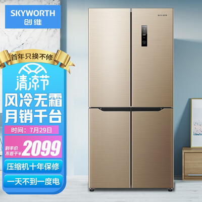 冰箱采用风能冷冻,变频压缩机智能效果超级好,运行的时候声音很小,也有智能显示板,外观质朴大气,2099买个四开门冰箱简直不能太划算,信价比超极高,值得购买!!!创维455升宝贝收到,特意使用了几天才来评价,空间很大,冷藏冷冻室都够大,物流很快,物流小哥也很好,冰箱很满意!外形外观:大小刚好制冷效果:非常不错 随意调节保鲜效果:水果蔬菜超保鲜容量大小:足够装满1个星期食材