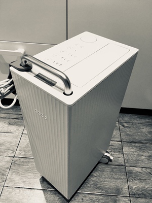 网上做了很多攻略,最后选定德业的。除湿效果还不错,20几平方的房间开一个多小时,适度就从80佳到了60。机器底座是有滚轮的,所有移动很方便。背后还有线槽,这个很细心,可以把线收纳起来。有一个需要改进的地方,显示面板上的灯光关不掉,晚上放房间有些亮光。