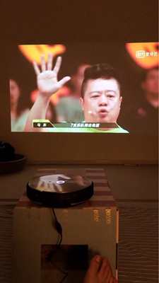 图1外面天气好,拉了一层透明白纱窗帘投在墙上的效果,真的很清晰;图2是晚上的效果,非常棒;可以手动调整梯形屏幕,方便;音响效果也很好;就是投影端app的会员和手机端会员不能共用,但是可以选择手机投屏,也能解决看VIP视频的问题。总体来说非常好。等后续追评