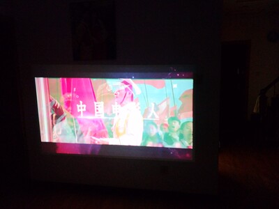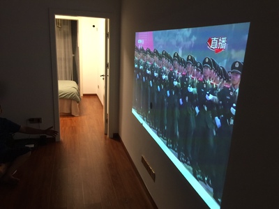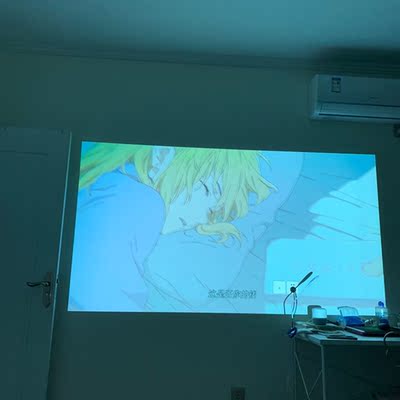 这是下午六点拉上窗帘关上门的效果,明显泛白,腾讯视频非常卡,而我的网速是200M的宽带支持,所以判定是机器配置不够,送的抗光幕布号称价值五千,我没觉得,广告上说白天不泛白,还有抗光幕布效果和一般投影效果的对比,我就信了,说实话,晚上不开灯效果很好,开灯后泛白的厉害,总之,送的抗光幕布简直了,根本不觉得有多抗光,有点过分了