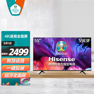 品牌:; 商品名称:海信55E3F; 商品编号:100014152244; 商品毛重:15.5kg; 商品产地:中国大陆; 屏幕尺寸:55英寸; 能效等级:二级能效; 分辨率:4k超高清(3840×2160); 推荐观看距离:2-2.5m; 电视类型:全面屏,大屏,教育电视,4K超清;