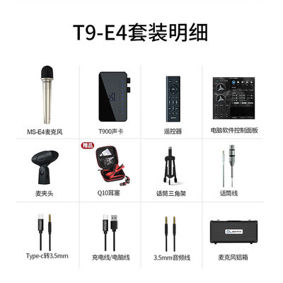 宝贝,收到了,特别满意嗯,可以用手机直接录音,用电脑的话效果更好,调音师态度很好很耐心,说出现问题随时解决特别特别棒。魅声T9-E4外置声卡混响效果也很好,音质也非常棒,效果简直不要太赞,音效很多,蓝牙伴奏很方便,充满电了使用的几个小时也没有显示电量少!美化人声,高低音调节,真的是太方便了,太喜欢了,这个价格真的超级值客服小雅很用心!不懂得马上就会回复!产品也很棒试了一下!收音特别棒!快递也很给力!昨天定的今天上午就到了!很满意!后续使用效果再追平