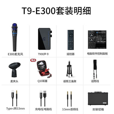 音质效果:非常棒,值得购买!不敢相信自己的耳朵,声音太好听了。外观材质:高大上啊,选了好几天啊,看中了魅声家这款,不负所望,大大的赞,客服燕燕很耐心解答问题,态度很好,老板加鸡腿哦魅声 T9-E300非常满意,效果棒棒的,而且还自带好几套音效场景。店家物流给力。唱的歌很清晰。很满意已经用了一个星期,设备效果非常不错,包装非常漂亮,送的东西也多,针对手机的也送齐了配置,调音不会调音师还额外qq一对一连接,教会你