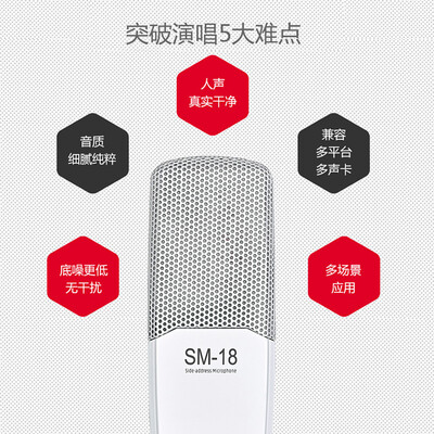 品牌:; 商品名称:得胜SM-18套装礼品1; 商品编号:100006736327; 商品毛重:0.529kg; 商品产地:中国大陆; 连接主体:手机,台式电脑,笔记本; 传输方式:有线; 类型:直播声卡套装; 指向特征:心型指向; 扬声方式:耳机; 伴奏输入:3.5mm有线; 使用方式:桌面式; 供电方式:外接供电; 适用场景:直播,手机K歌,电脑K歌;