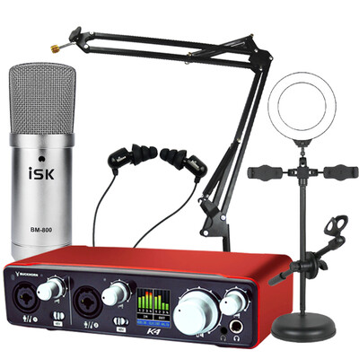 收到货试了一下,声音效果挺好,声卡也很精致,方便携带,特别满意的一次购物,还会光顾哦。BuckhorK4+ISK BM800外观很漂亮,音质不错,很好的一款产品,连接电脑很方便,U口接口即可,还不需要驱动,使用很方便。商品包装完好,发货速度快,赠品的悬臂和耳机放喷网都齐全,不用另买。单买的手机直播线也匹配,总体很满意。等调试之后,看看麦克和声卡的效果,在进行追评。