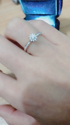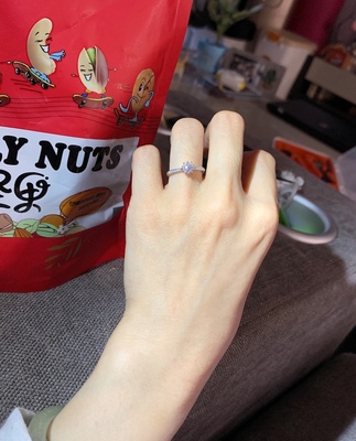 很好不错。美美的。钻石很闪。款式比较日常,不夸张,中间有点小插曲,商家很负责,售后做的很到位。刚开始比较犹豫。后来决定买也是服务和品质让我选择它。是给自己的一个小礼物。正好赶上活动价格也很合适,选的50分的。这个尺寸对于我这种小手比较合适。这款还比较显钻。耐看型
