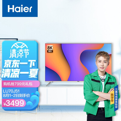 品牌:; 商品名称:海尔LU70J51; 商品编号:100012066554; 商品毛重:32.7kg; 商品产地:中国大陆; 屏幕尺寸:70-77英寸; 能效等级:二级能效; 分辨率:4k超高清(3840×2160); 推荐观看距离:3-3.5m; 电视类型:大屏,4K超清;