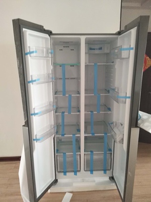 6月1日凌晨下单,当天白天就送到了,两位送货师傅累坏了,挺大的,看见评价里的亲买的大眼睛我也买了一个,贴上挺有童趣,空间还是很大的,放下我家这个位置实际有点大,冷藏冷冻空间都很大,那个时候怕声音大,试用了几天启动确实有声音,说明书说是4分贝左右,我用手机带的分贝测试器测试了一下50分贝左右不知道准不准,不启动的时候很静音,声音可以接受,侧边是黑色的这点不是很喜欢,显屋里黑,已经买帖纸要自己帖亮堂点了,总体满意希望