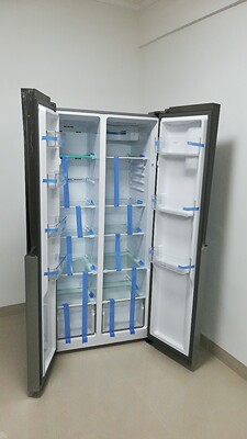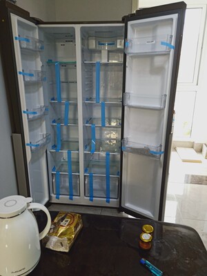 宝贝收到,包装完好无损,快递小哥给力,电梯门和入户门都刚刚好进来,过程很顺利,冰箱美观,大气,颜色是我喜欢,的,师傅告知4小时后通电,因为还没入住,只好等明天再试电,总之这款宝贝很称心,五分好评。祝海信公司生意兴隆,步步高!