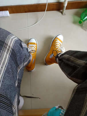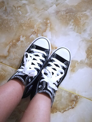 外观颜值不是一般的好,我第一次买这种高帮的帆布鞋,感觉真的很惊喜,尺码是店主推荐的,十分的合脚,穿上也非常的舒服,底子很软很轻便,整体感受非常的不错,这款鞋子性价比十分的不错,整体造型也十分的时尚简洁,非常棒!