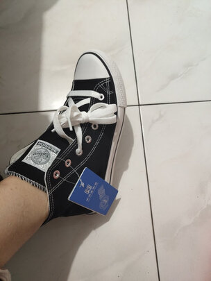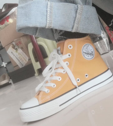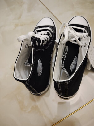 外观颜值不是一般的好,我第一次买这种高帮的帆布鞋,感觉真的很惊喜,尺码是店主推荐的,十分的合脚,穿上也非常的舒服,底子很软很轻便,整体感受非常的不错,这款鞋子性价比十分的不错,整体造型也十分的时尚简洁,非常棒!