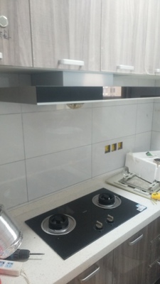 还没用,费老劲装上去了,打洞挖挡板,师傅弄了2,3个小时才装好,到处是木屑,打扫卫生弄了一晚上,累瘫。安装费花了550,太贵了,但是也没办法,不知道找谁搞啊,你说便宜点,师傅觉得太累不愿装你能怎么办,论掌握一门技术的重要性。感谢迎春花,大晚上给我推荐了这个型号,刚好可以卡进柜子中间。将就着看吧,已经完全不想搞了,什么时候心血来潮再搞块板子挡洞吧,等我妈来做饭试试效果。