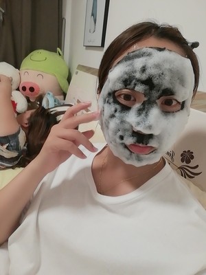 我也是看到抖音上很火够买的,效果确实不错。敷在脸上很舒服,泡泡很丰富,贴上以后慢慢的泡泡越来越多,像大熊猫🐼一样,呵呵🤭,吸收的还不错,拿掉以后皮肤白嫩,没有不舒服,我觉得这款面膜挺不错的,刚贴上泡泡就出来,而且还有一些凉凉的,很舒服