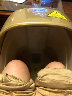 熏蒸完整个膝盖都是暖的 超级舒服 感觉坚持下去膝盖酸痛可以缓解 泡脚的水温可以自己调节非常好