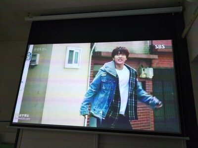 装上幕布,将卧室主光源关掉,剩下辅助光源,观看效果就和影院一样,高清。白天看要拉上一层薄窗纱帘,梯形校正功能有待升级。机子反应速度很快。快速动作没有拖影。