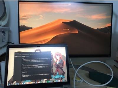 笔记本连接显示器显示效果非常棒, 连接笔记本hdmi 2.0的接口能开到60hz,效果真的很不错。
